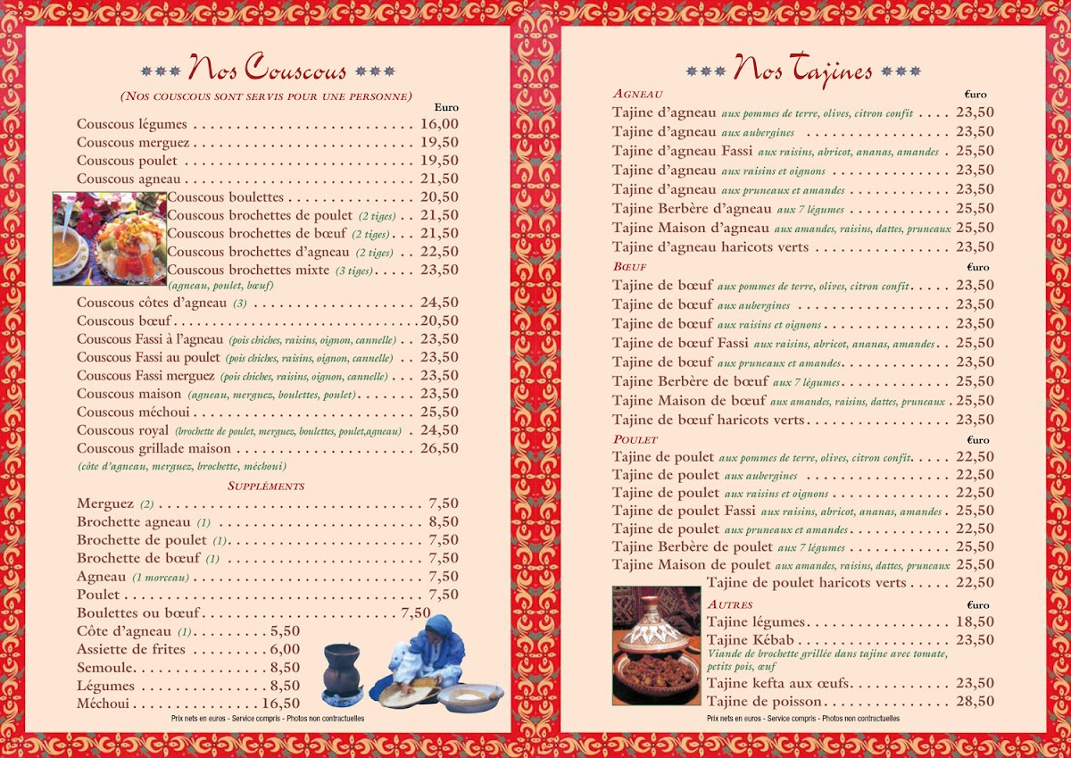 Another standout feature is their tajines, which are a testament to the restaurant’s commitment to quality. Dishes like the Tajine d'agneau aux pommes de terre and Tajine Berbère de Poulet show the meticulous preparation and depth of flavor that Moroccan cuisine is celebrated for. The combination of spices and fresh produce creates an unforgettable experience that transports you straight to the bustling markets of Morocco.