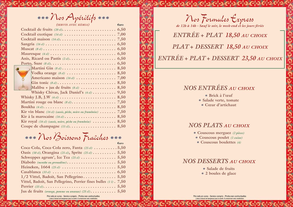 When it comes to the menu, La Perle du Maroc excels in offering a wide variety of dishes that reflect the heart of Moroccan culinary traditions. Their couscous selections are a highlight, featuring options like the Couscous Légumes and Couscous Merguez, both affordably priced and crafted from fresh ingredients. Diners rave about the wonderful broth and generous portions, making it a must-try for anyone wanting to indulge in authentic Moroccan flavors.